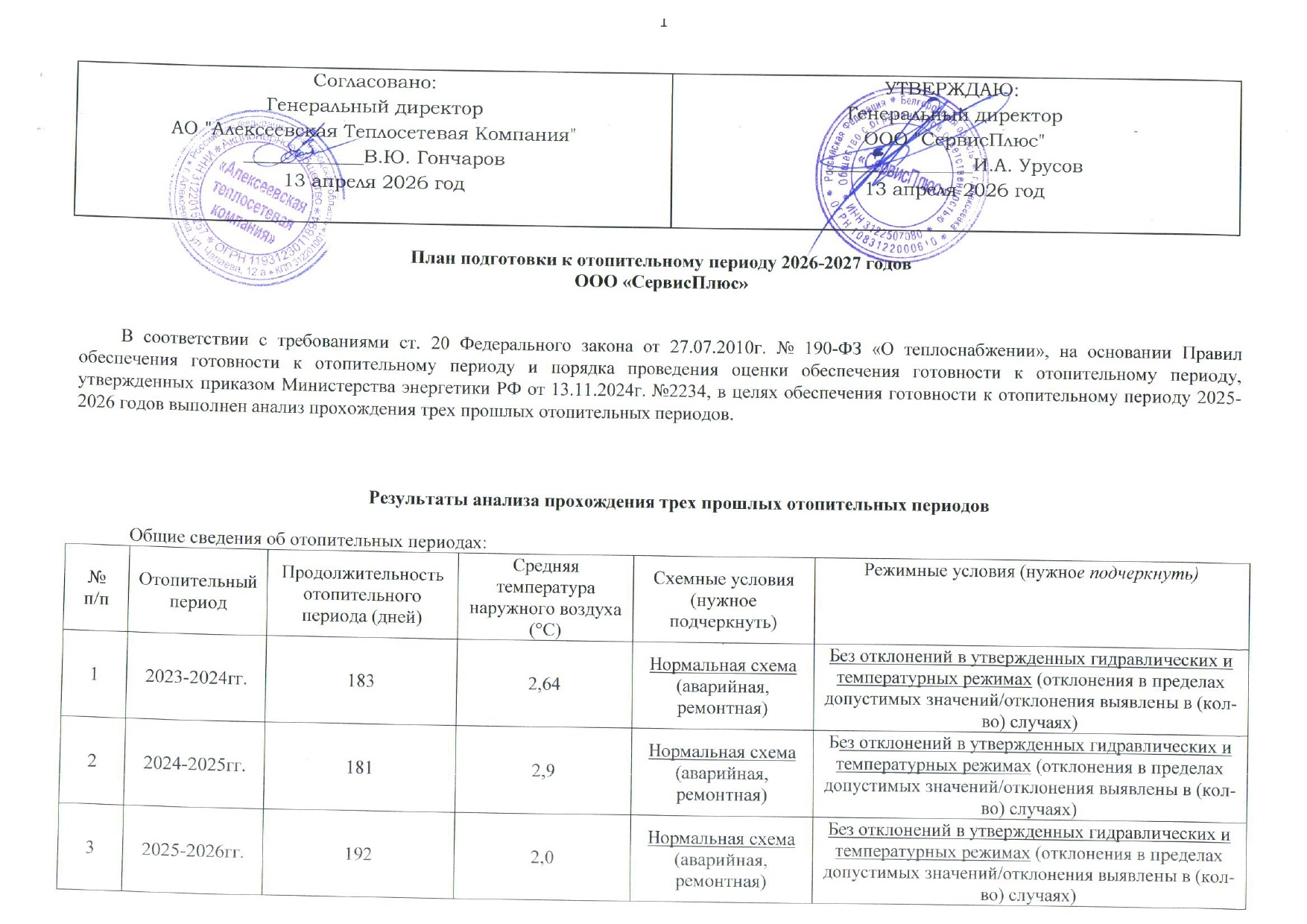 ПЛАН ПОДГОТОВКИ К ОТОПИТЕЛЬНОМУ ПЕРИОДУ 2026-2027